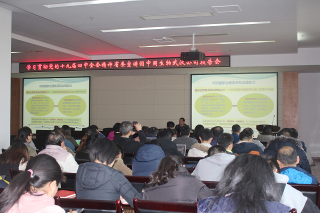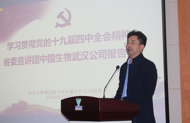 12月13日,中国生物武汉公司举办学习贯彻党的十九届四中全会精神湖北省委宣讲团报告会,湖北省委宣讲团成员、华中农业大学马克思主义学院院长梁伟军同志作宣讲报告,武汉公司领导班子成员、党委委员、中层管理人员、党支部书记及党员代表共160余人参加宣讲报告会。